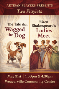 Enjoy an afternoon of live theater with the Artisan Players as they present two delightful playlets: The Tale That Wagged the Dog and When Shakespeare’s Ladies Meet. This entertaining double feature blends humor and classic charm, offering something for every theater lover.