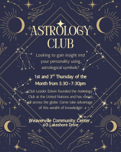 Astrology Club with Edwin This program will take place the 1st and 3rd Thursdays from 5:30pm – 7:30pm.